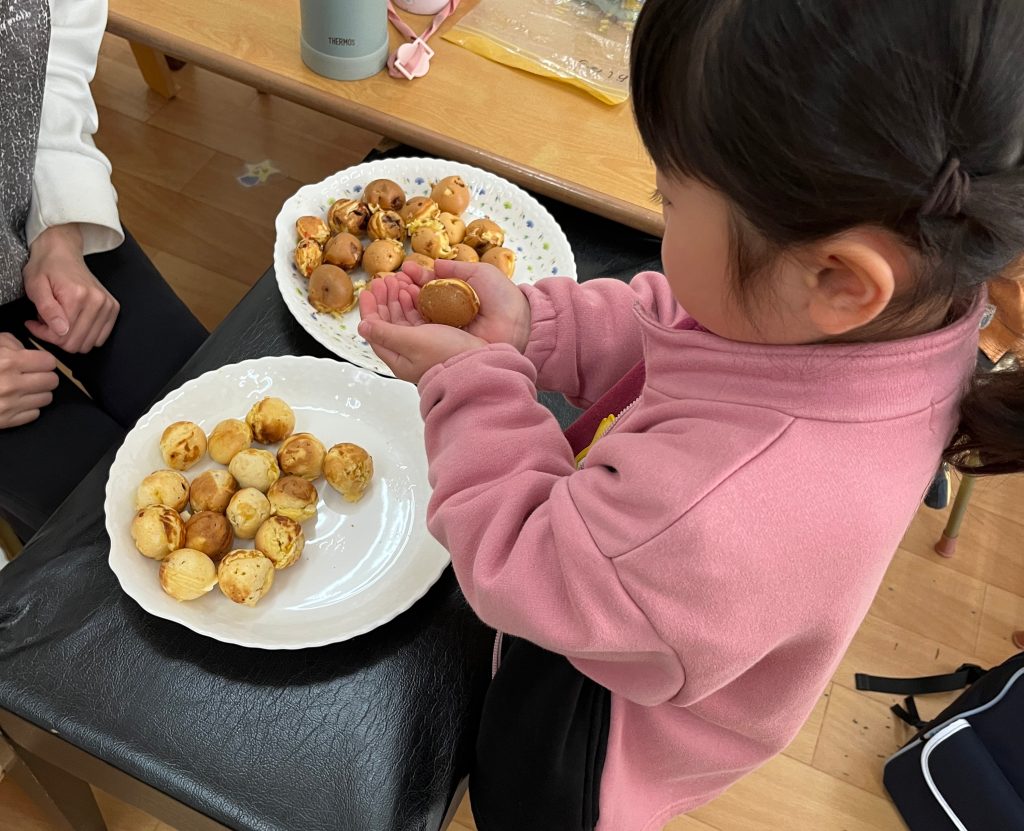 年少組の子どもたちがベビーカステラを作りました!とっても美味しそうでしたよ!